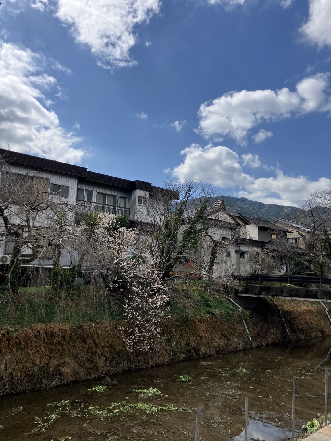 勝浦の川沿いに続く桜並木
